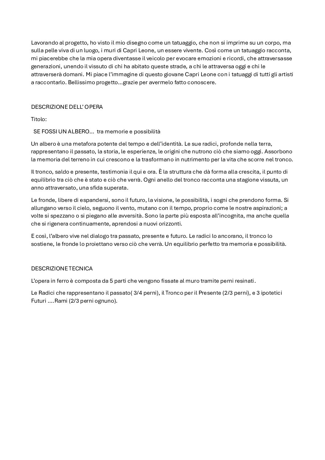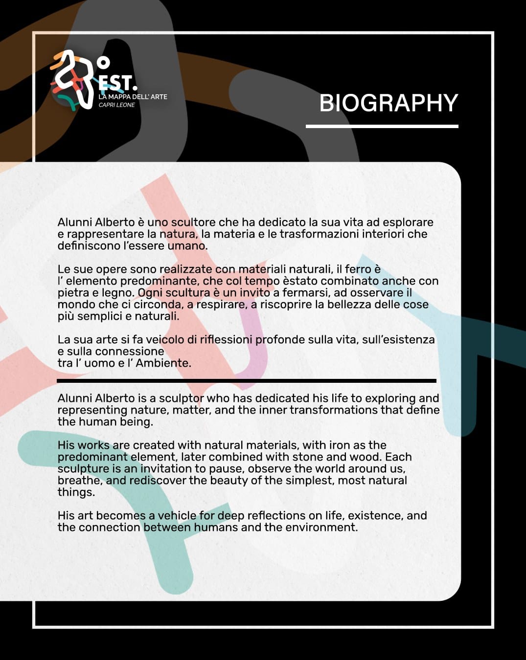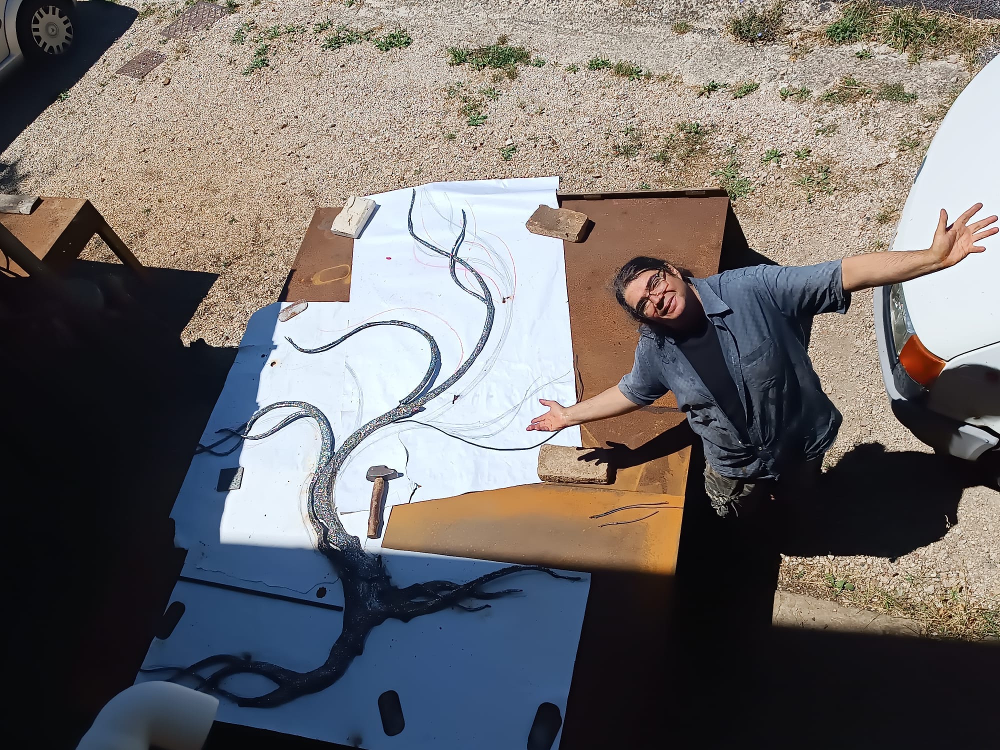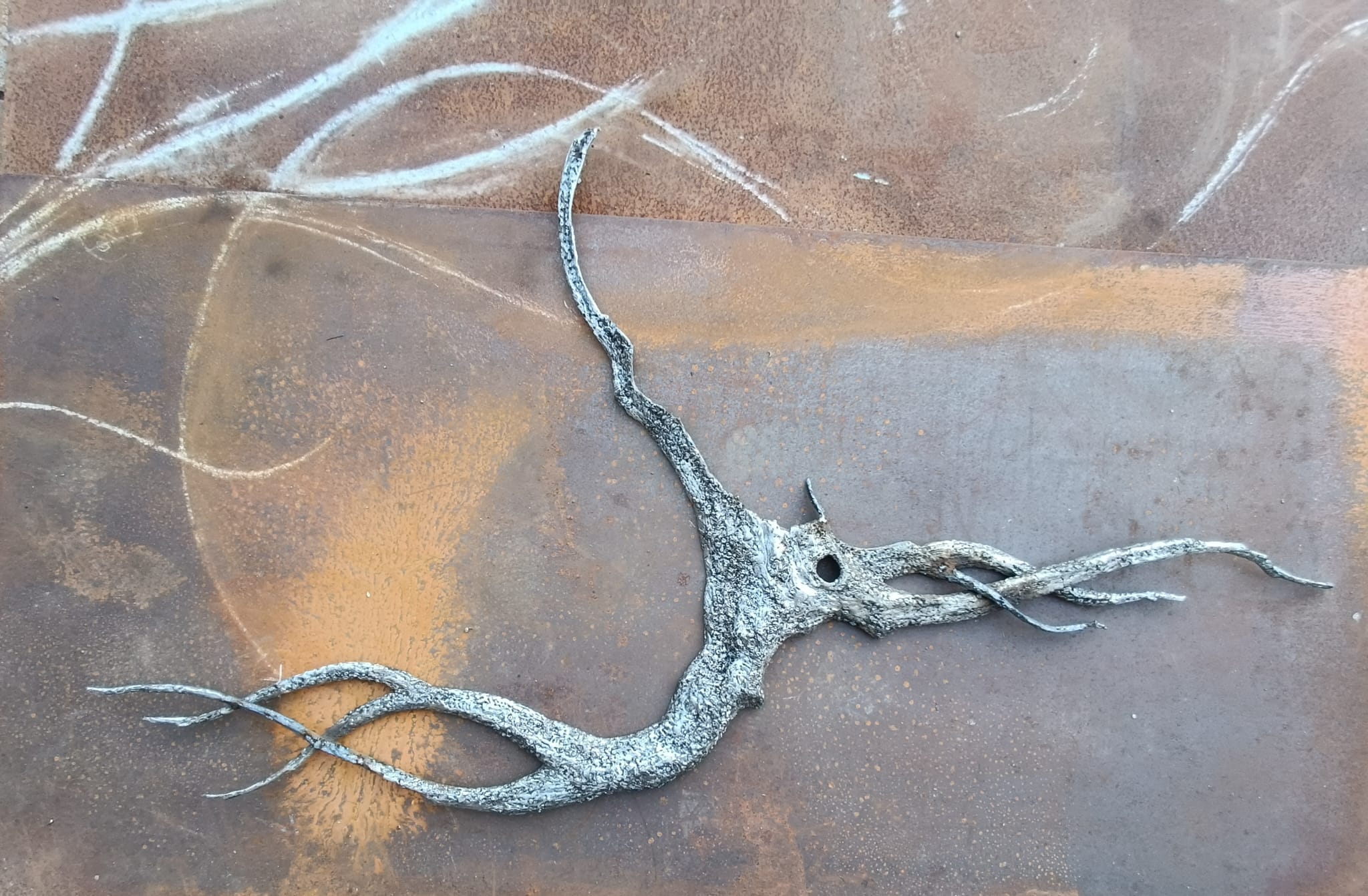 Il ferro è il mio linguaggio, ogni scultura è un invito a fermarsi ad osservare il mondo, a respirare, a riscoprire la bellezza di ciò che ci circonda creando una connessione tra uomo e natura. Nel 2015 ho avuto l’occasione di esporre la mia visione nella mostra Ad occhi aperti, a Montone (PG) nell’ Auditorium di San Fedele. Le mie sculture sono state accompagnate da pannelli bianchi, volutamente lasciati vuoti, dove i visitatori hanno potuto riempire con poesie, pensieri, riflessioni. Ho voluto creare un dialogo vivo, autentico, tra le opere e chi le osservava. E’ stato un invito a rallentare, a fermarsi un momento per guardarsi intorno e dentro, per cogliere quelle realtà che troppo spesso ci sfuggono nella frenesia quotidiana; un invito a entrare, a partecipare, a lasciare una traccia del proprio sguardo, della propria presenza.